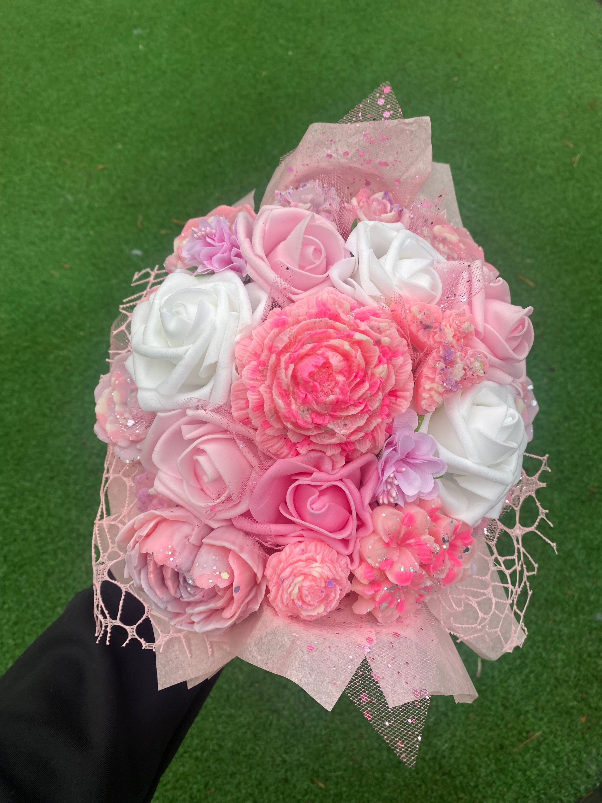 Each basket includes soy wax melts in chosen scent artificial flowers and greenery